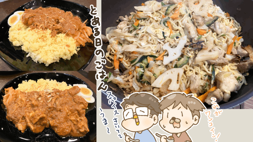 スパイスカレー(外食)、焼きそばチャンプルーでごはん