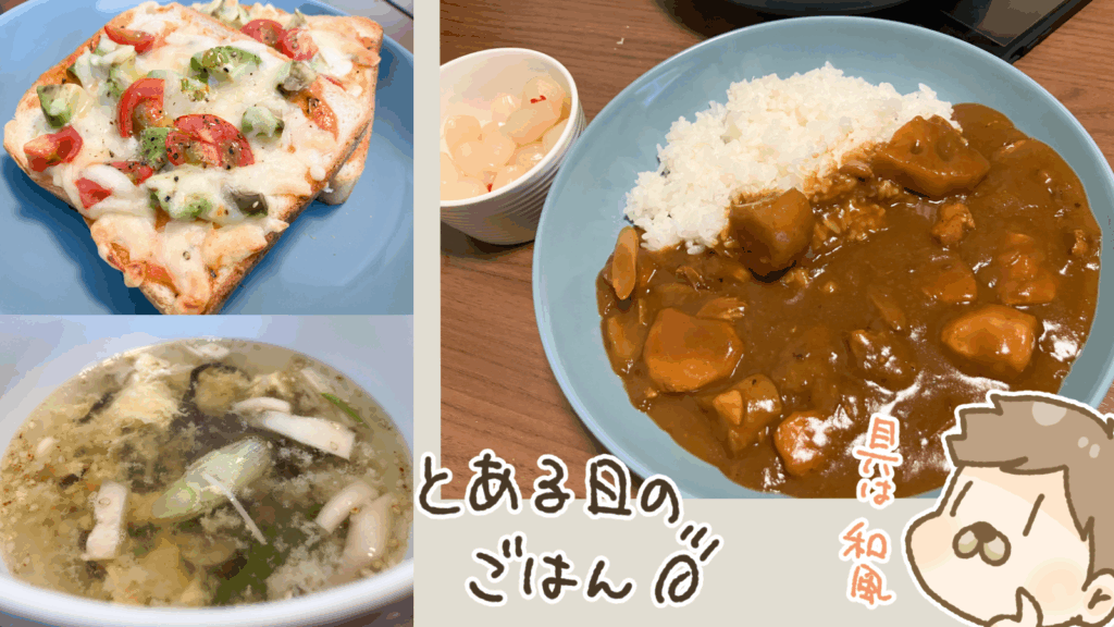 とある日のお昼ご飯は、ピザトーストともずくスープでした。