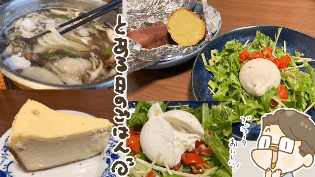 夜ご飯は、焼き芋とブッラータサラダでした。
