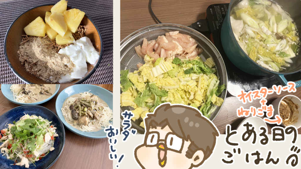 お昼ご飯は、タイカレーそうめんとヤムウンセンでした。