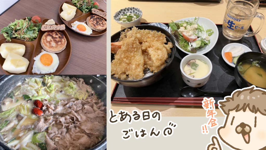 クランペットプレート、豚鍋、天丼定食