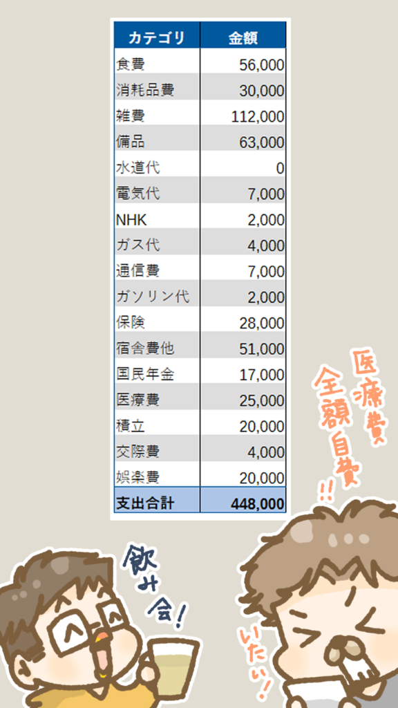ほとんど私が使ったもので、息子は飲み会などささやかなものです。